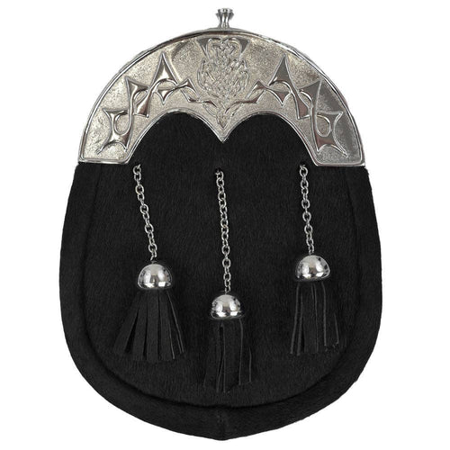 Abito completo Modern Thistle in pelle di vitello nera Sporran