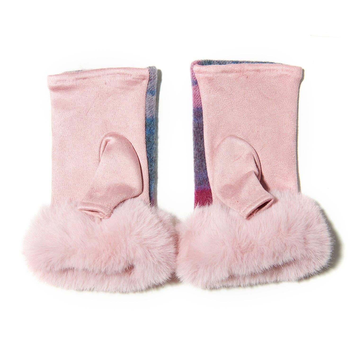 Guanti in lana d'agnello con polsino, colore PINK AND BLUE TARTAN