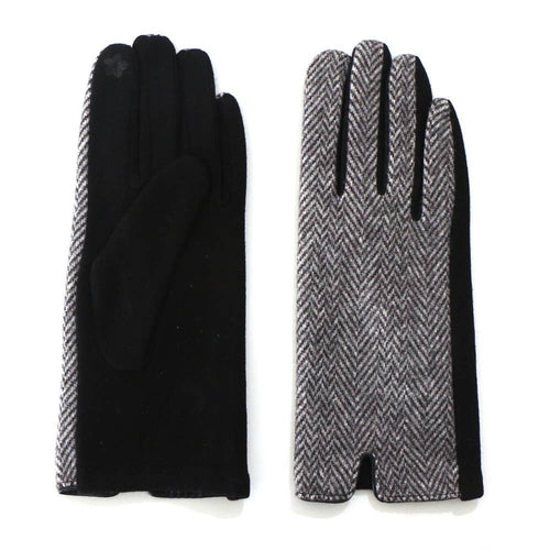 Guanti da donna in tweed grigio a spina di pesce GLVM-002C con touch screen: Black / One Size